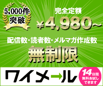 メール配信サービスは読者の数、配信部数によって価格が変動しがちですが、ワイメールは決まった定額で読者数、配信部数は無制限なのでわかりやすいです。